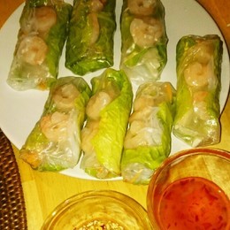 フォーと生春巻きを食べました。友人が出来たばかりの