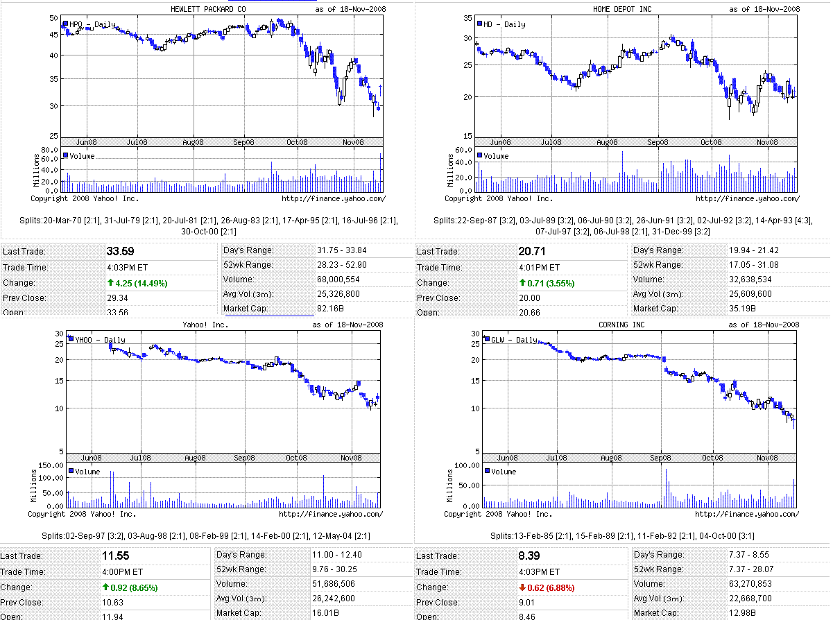 ヒューレッド・パッカードの暫定決算と見通しを好感して米株は反発(HPQはダウ構成銘柄)。CEOが辞任し、マイクロソフトによる買収期待が高まったヤフーも買われました。それと、インベブに買収されたアンハイザー・ブッシュのS&P500入れ替え伴う売買が、取引時間終盤の指数の急な動きにつながったようです。米10年債利回りは低下。