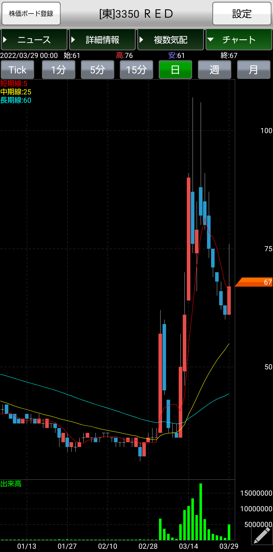 3350 レッドプラネットジャパン 上昇率 91%(前日12%増)
