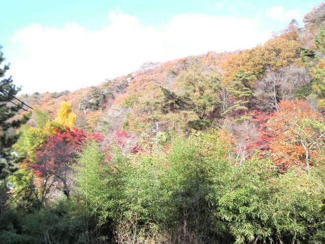 明日は同僚の送別会のため日記書けぬかもしれませぬが、皆さまに気分転換の願いを込めて、鬼岩の紅葉写真第二弾をアップしたいと思っておりまする(^^)/