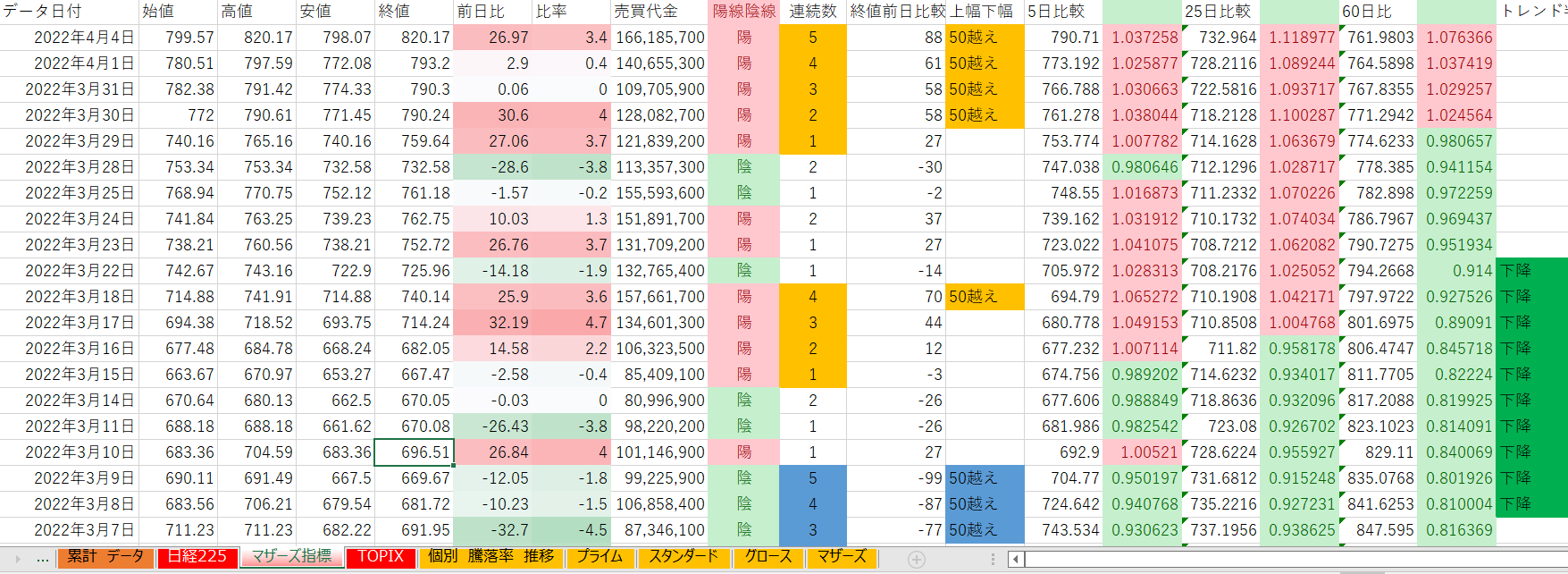 83営業日あるのですが、71日間下降トレンドでした(;^ω^)