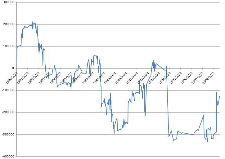 そもそもこの手法は逆張りという意味合いが強く、最大DDが高めなので、資産に余裕のある人でないと厳しいところがあるような気がしました。