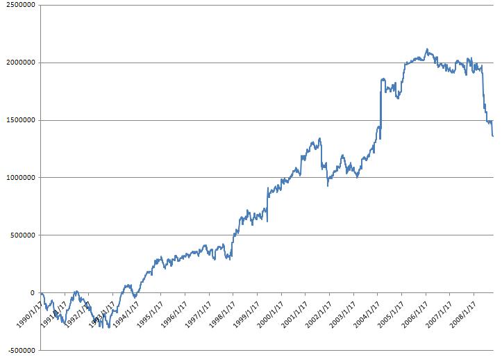 これを例のように、資産曲線に表したのがFig1で以下が実際に売買した結果です。