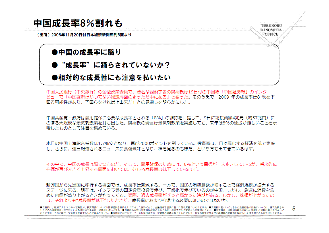 そのうえで「2009 年の成長率は8 %を下回る可能性があり、