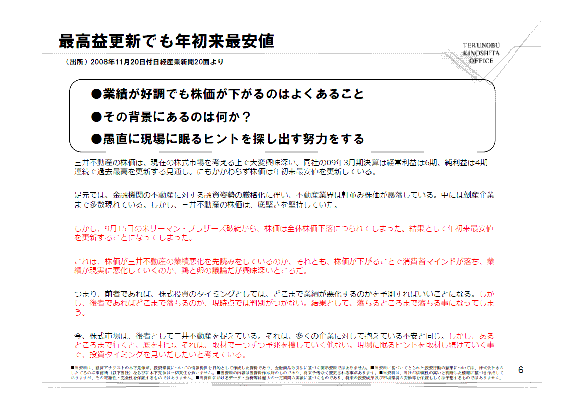 これは、株価が三井不動産の業績悪化を先読みをしているのか、それとも、