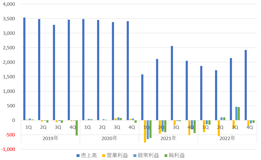 【ワイズテーブルコーポレーション】3ヵ月業績グラフシェア