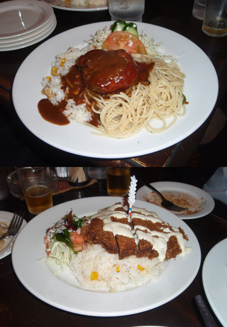 焼き飯にパスタと肉料理が一皿にドーンとやってきます(^^)毎日食べていたらそれはそれは大きくなれるでしょうねー。