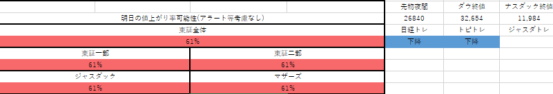 東証全体のどちらに触れるかの予想的中率は 84% になりました。