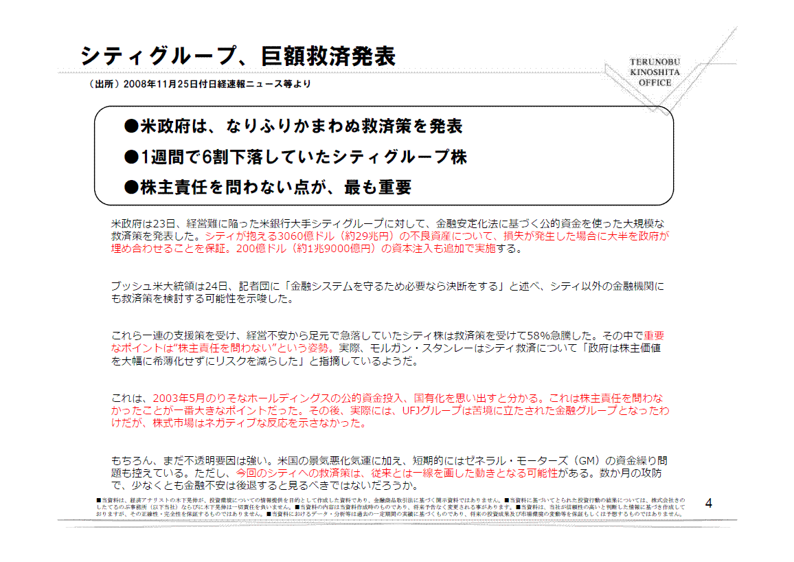 ただし、今回のシティへの救済策は、