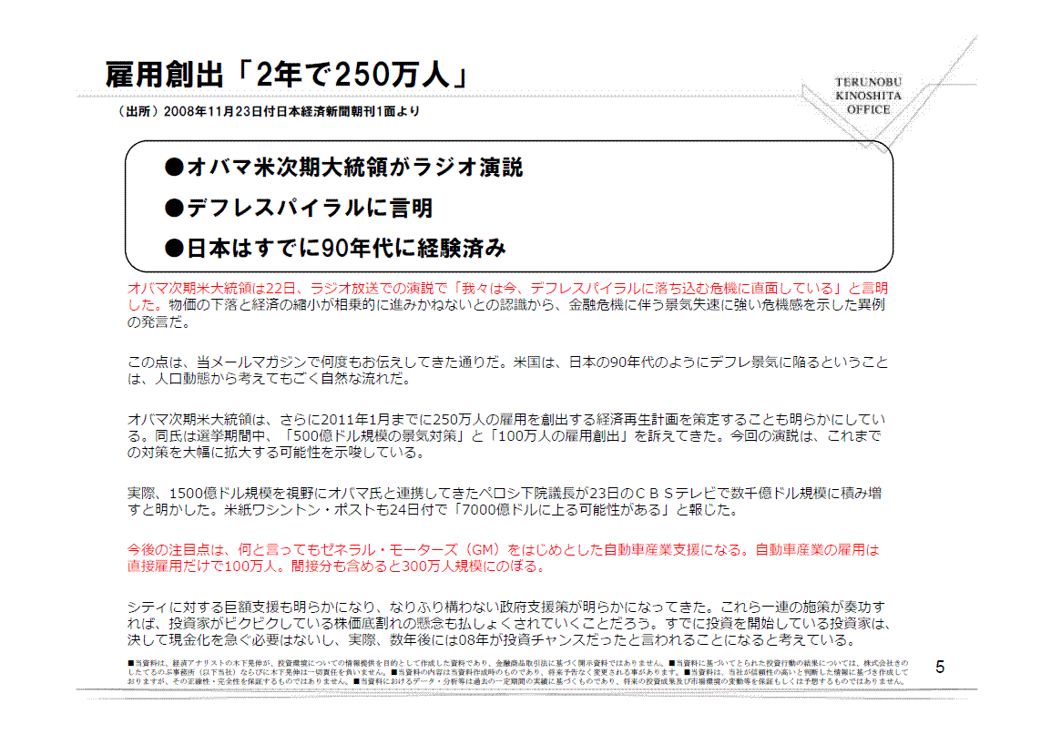 同氏は選挙期間中、「500億ドル規模の景気対策」と