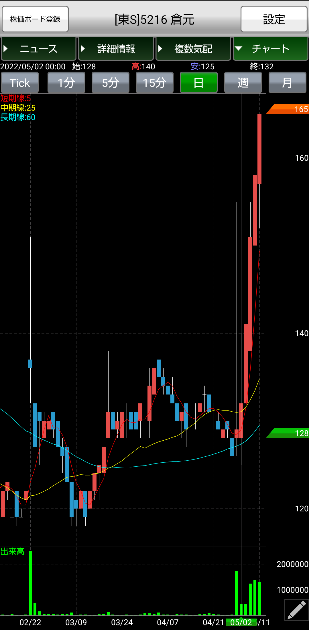 ※3枚目 過去、フルッタフルッタとにたチャートの銘柄 倉元