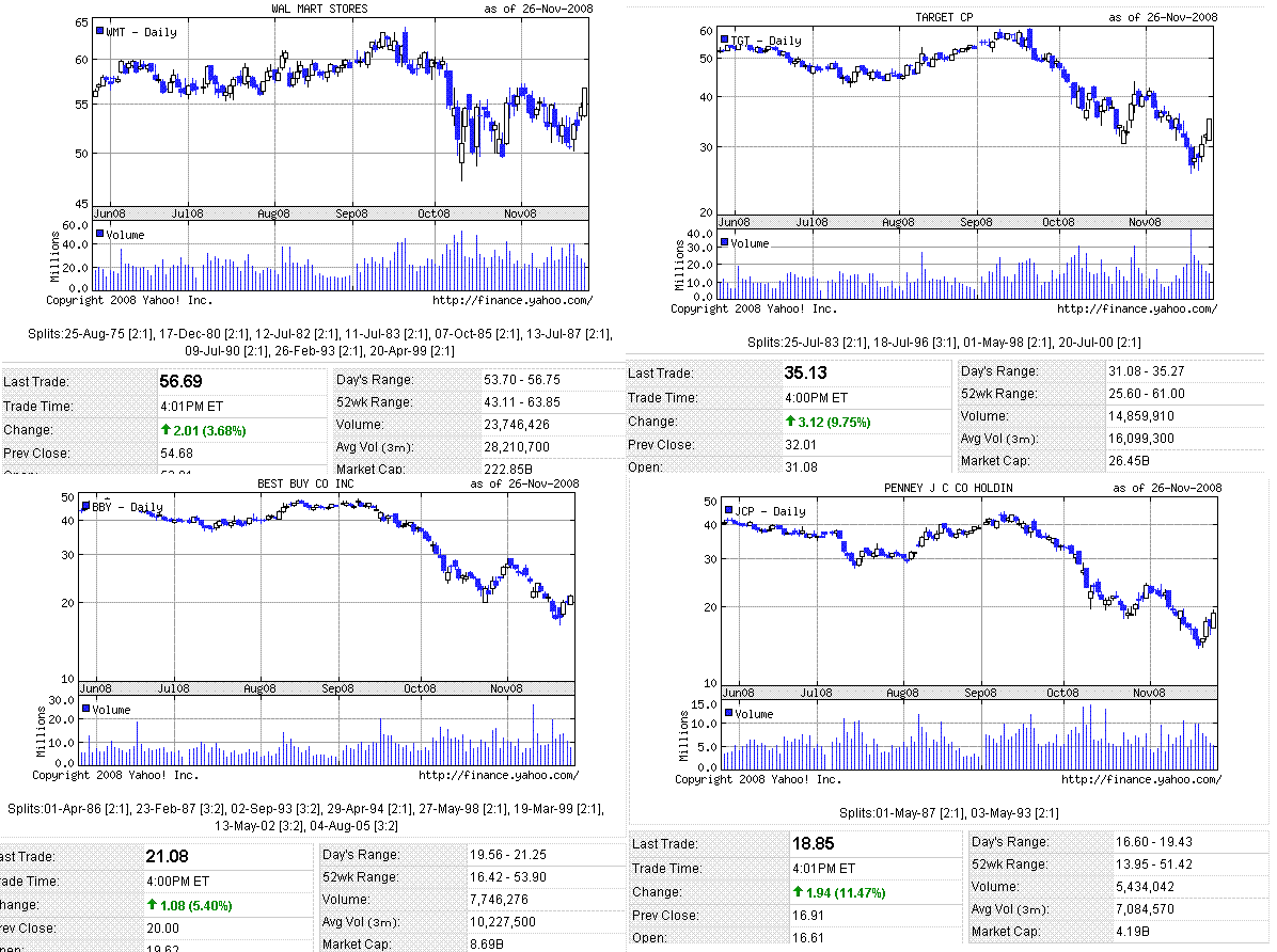 小売株も高かったです(画像2が小売株)。ブラックフライデーへの期待ですかね。もしくは、今は個人消費は全然期待されていない状況なので、もしも良い数字が出たら小売株が暴騰する。それを恐れて買い戻したのかも。