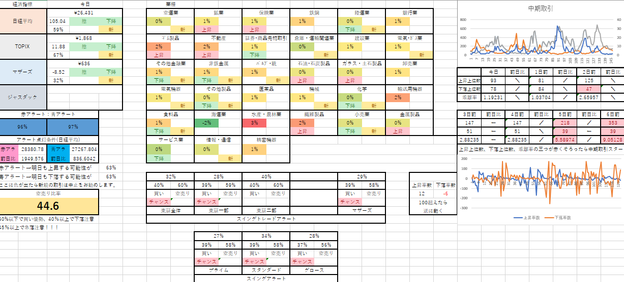 ・青アラートという日経平均の5日線に着目したアラートを点灯させる