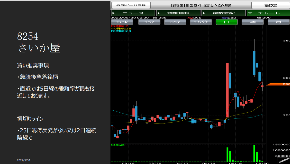 チャットワーク内で過去に推奨させていただいた銘柄です。