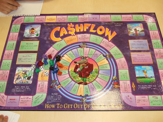 ところで、交流会も兼ねて今日はあるゲームをしました。「金持ち父さん」で有名なキャッシュフローゲームの事で平たく言えば人生ゲームみたいなものです。勝てなかったけどすごく楽しかった。写真はキャッシュフローゲームで使うボードですよ。