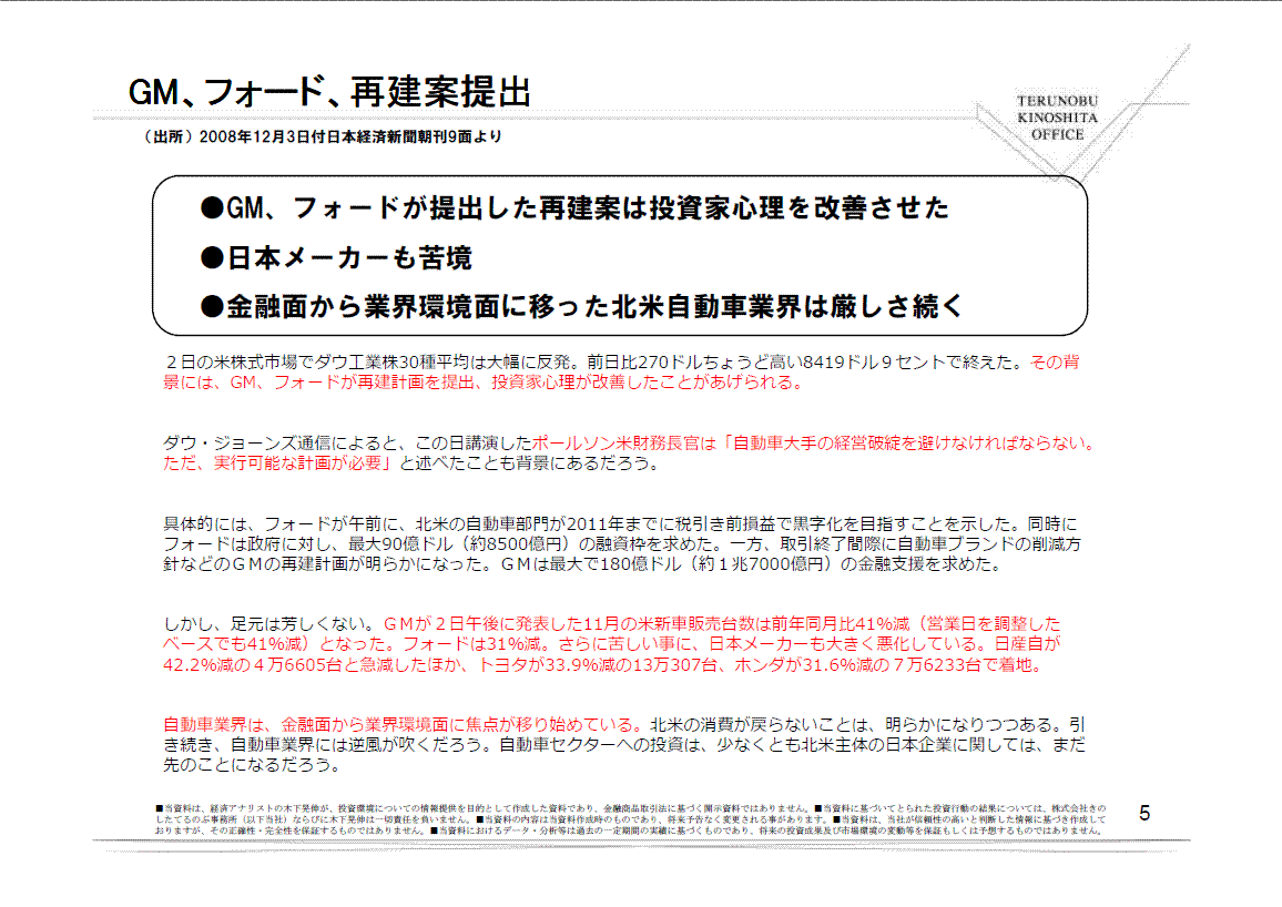 ●GM、フォードが提出した再建案は投資家心理を改善させた