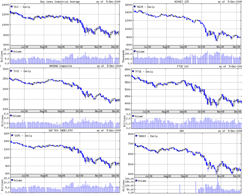 ピッグスリーの状況ですが、今日出てきた情報では、関係者の証言によると、計150億ドル程度の融資を行うことで議員たちが基本合意に達したようです。3社で340億ドルを要請していたのに比べると少なく、とりあえず延命させてあとはオバマ次期大統領まかせ・・・ってことでしょう。TARPからの融資を主張していたペロシ下院議長が譲歩して、政府側が主張していたように、環境対応車開発のための250億ドル融資枠から出すことが濃厚になったようです。金曜発表の雇用統計がひどい数字で、こりゃ今は潰せないな・・・ということで延命の方向で話が進みだしたみたいですね。
