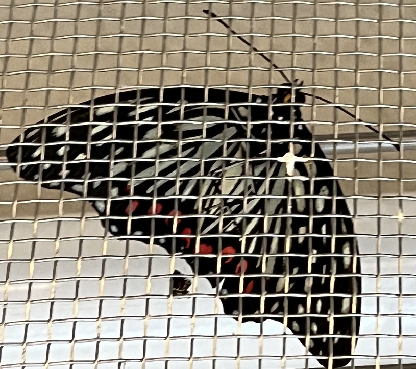「かごの鳥」ならぬ「かごの蝶」ですね。