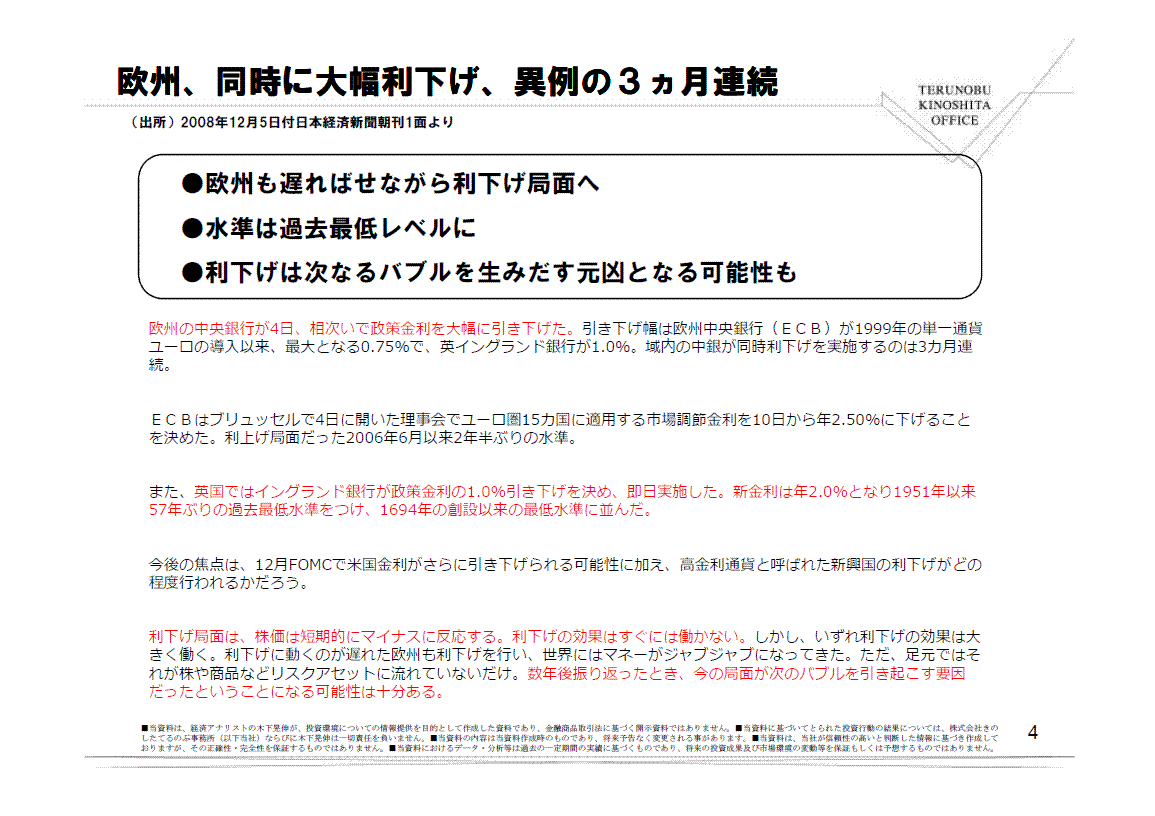 1.欧州、同時に大幅利下げ、異例の3ヵ月連続
