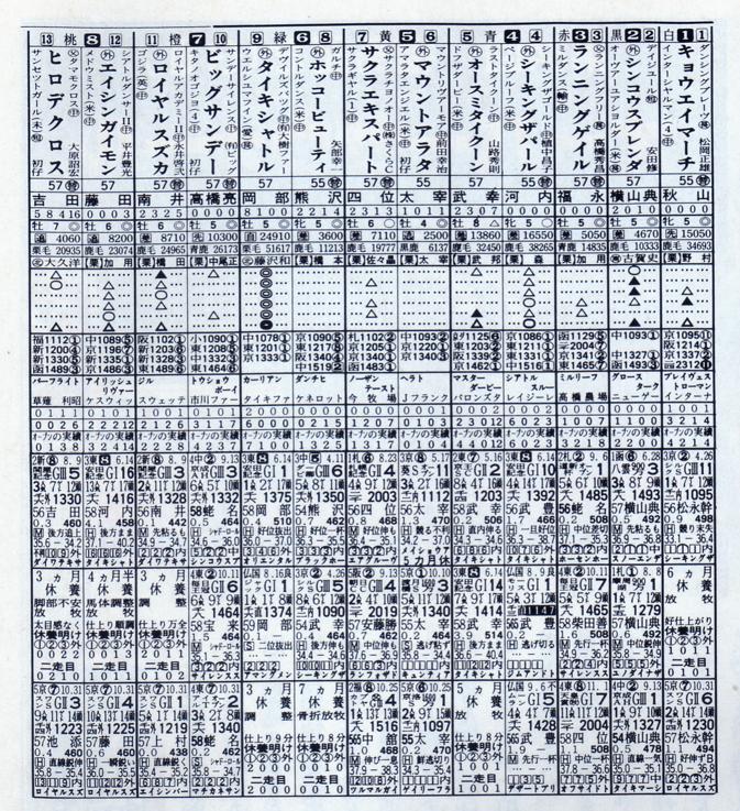 一昨年前はタイキシャトル、スピードワールド、トーヨーレインボーの三頭が人気を分け合う中、実力を見せて2着!