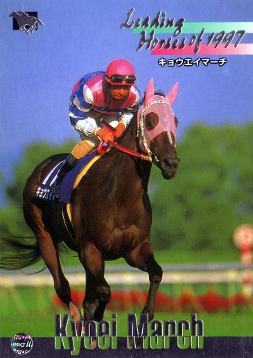 キョウエイマーチさんは、お馬さんが好きなのですね。私は、トウカイテイオーに始まり、トウカイテイオーに終わりました。名前は覚えていません(有名なお馬さんだったと)が、競技中に骨折したのを見て、可哀相で泣けてから離れてしまいました。でも、お馬さんは好きなことは変わってませんよ。当時は、阪神競馬にスクーターで行ける距離に住んでいたんですよ、懐かしい思い出です・・・。では~(*'-')ノ~*