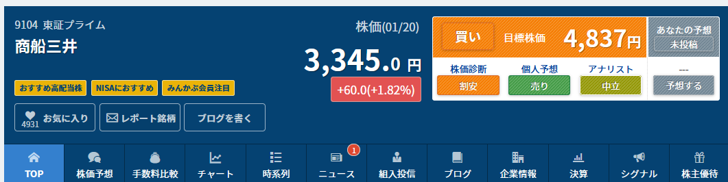 2022/7/21 商船三井 購入金額3340円