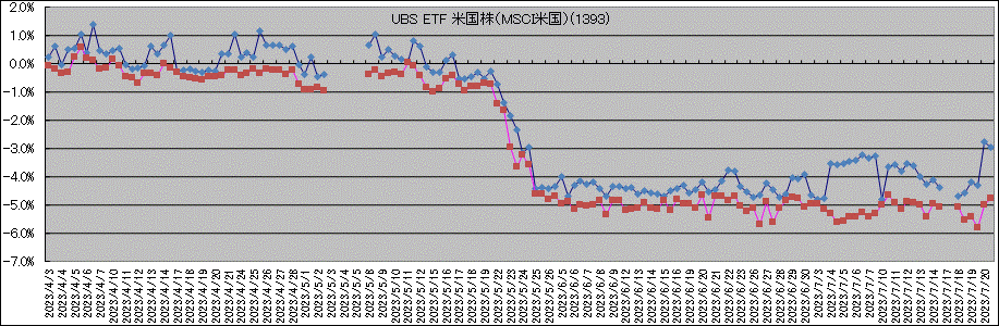 UBS米国株(1393)の最終売買日の大引けの板です。