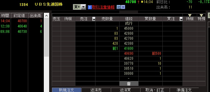 UBS先進国株(1394)の最終売買日の大引けの板です。