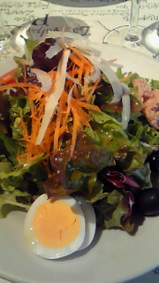 前菜はサラダにしてみました。野菜が想定よりも多くて、盛りだくさん。