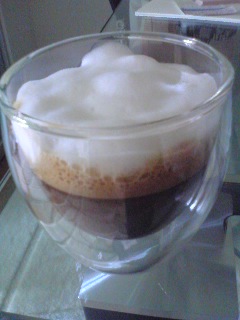 でも、フォームミルク入れるときにちょこっと失敗して、泡の表面がもこもこになってしまいました・・・