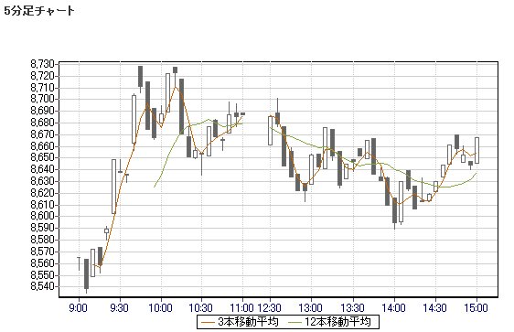日経平均株価 8,667.23 +54.71 +0.64%