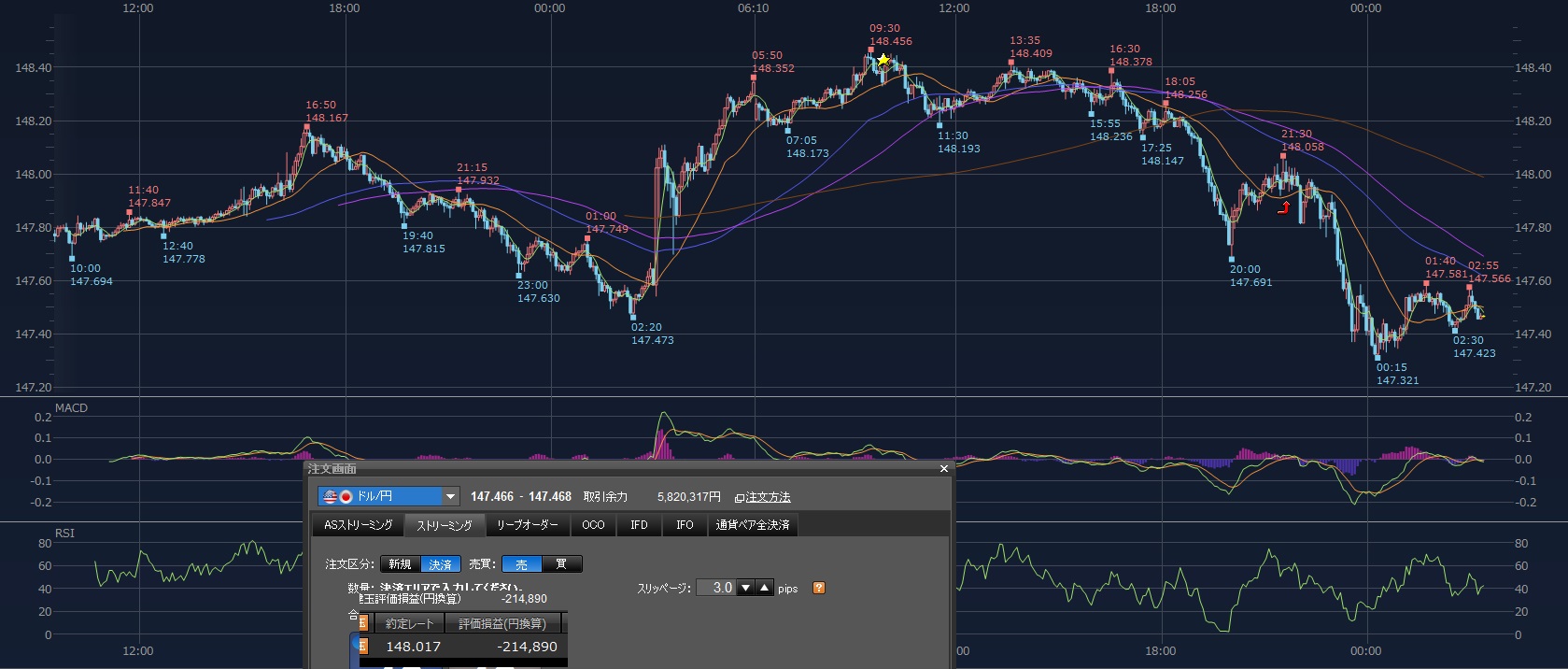 それか昨日の16時50分の高値んとこで一旦決済やったな
