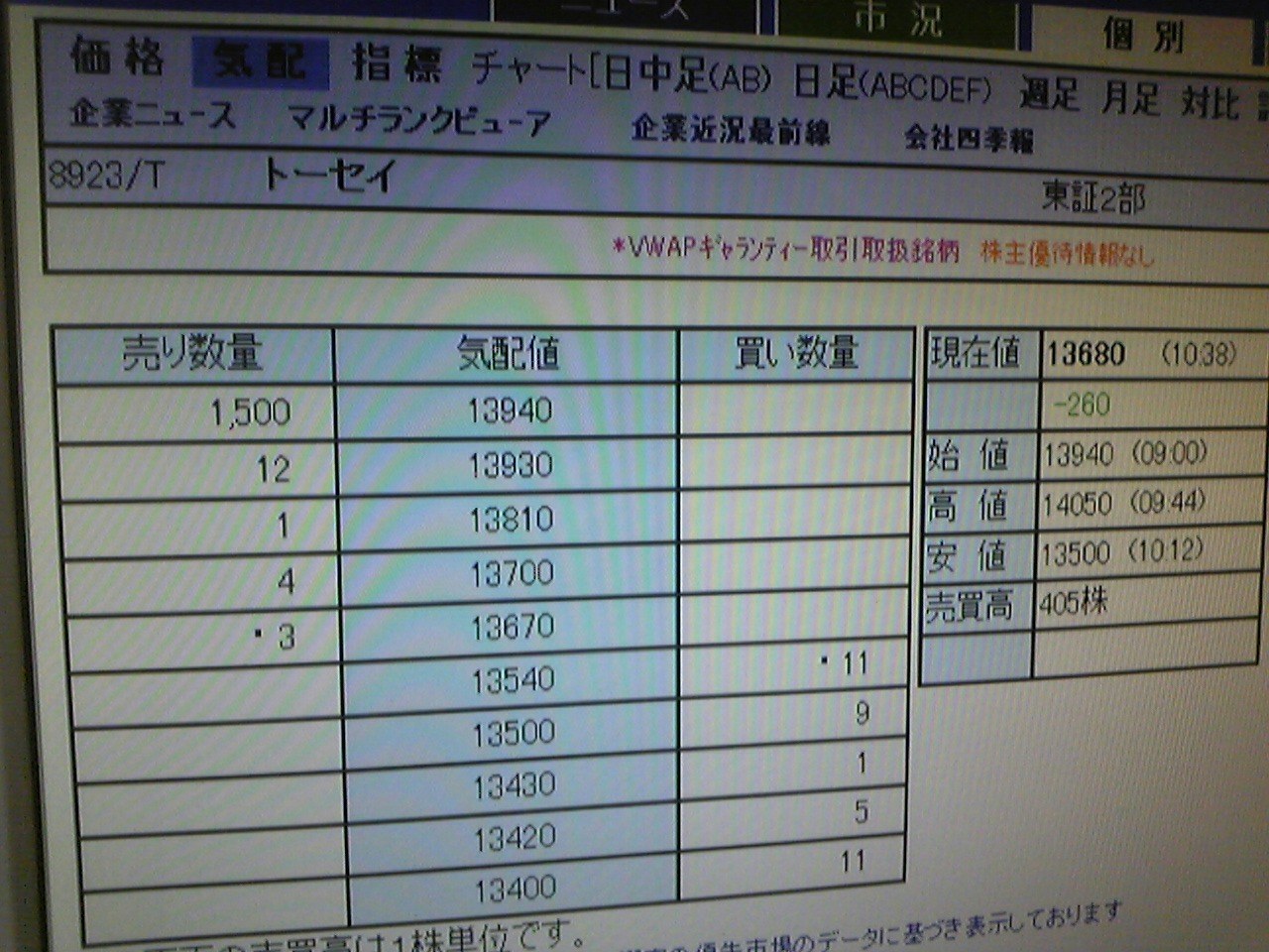 トーセイ(8923)の13940円の売り板。