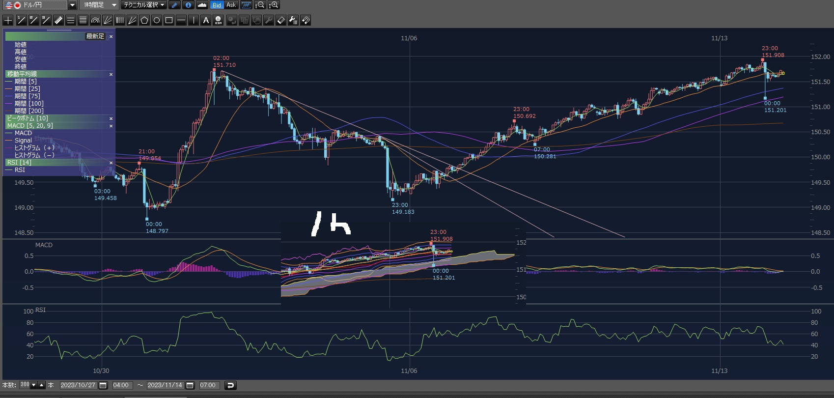 まあその後も上げて151.801円まで上げてる