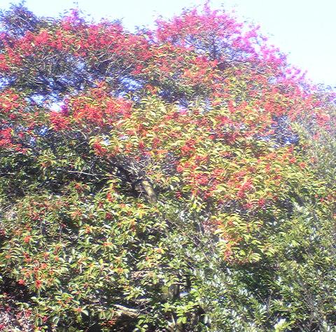 写真を撮ったらこの実を食べていた鳥が飛んでいきました。この中にまだ2羽います。