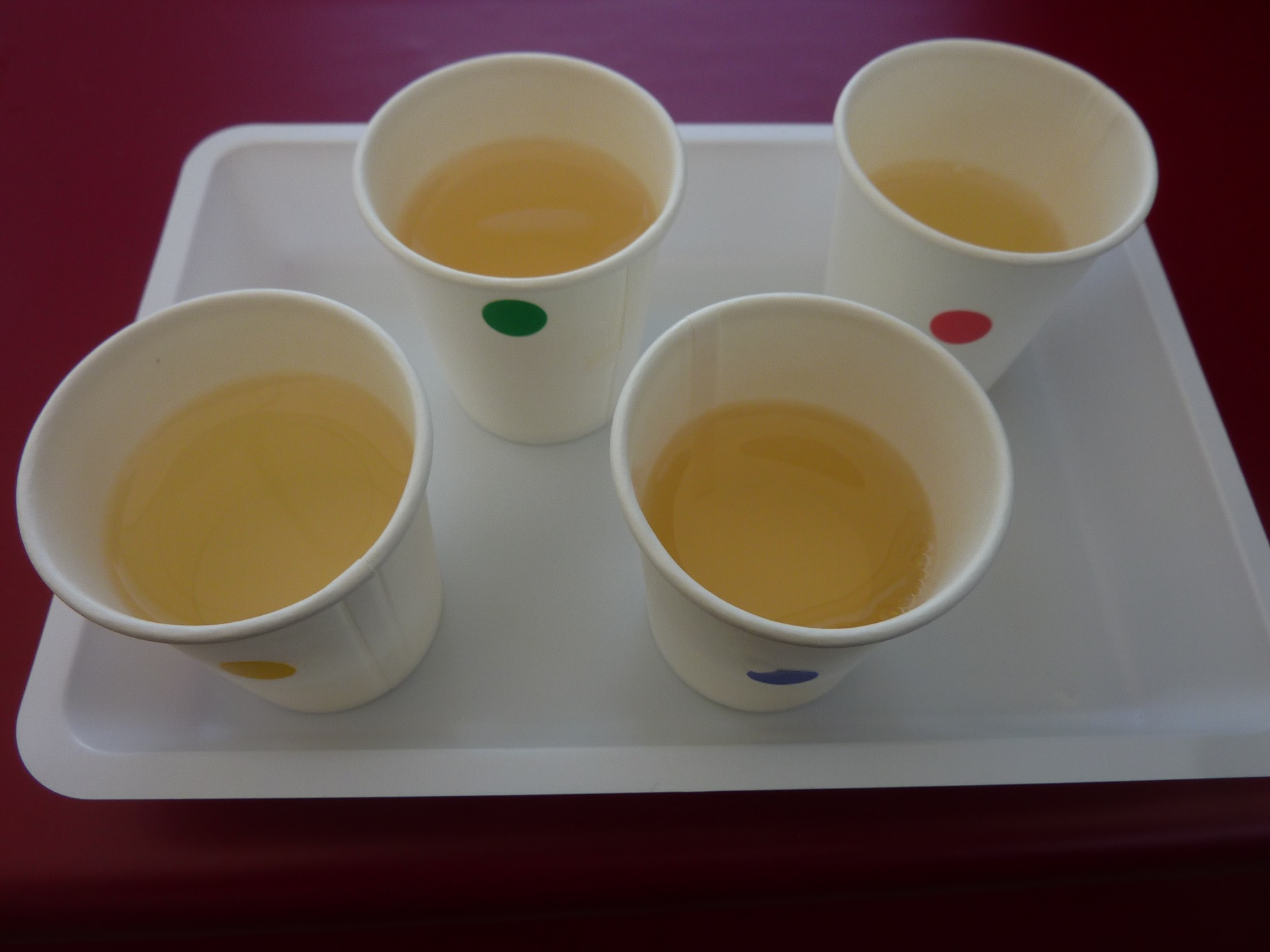 料亭の「ほんまもんの出汁」試食は四種ありました。