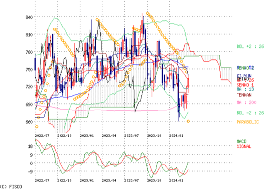 日足、週足だとこのまま素直に上がるかと思うが、月足が好きな形なので。年高値銘柄を買ったことを正当化中。