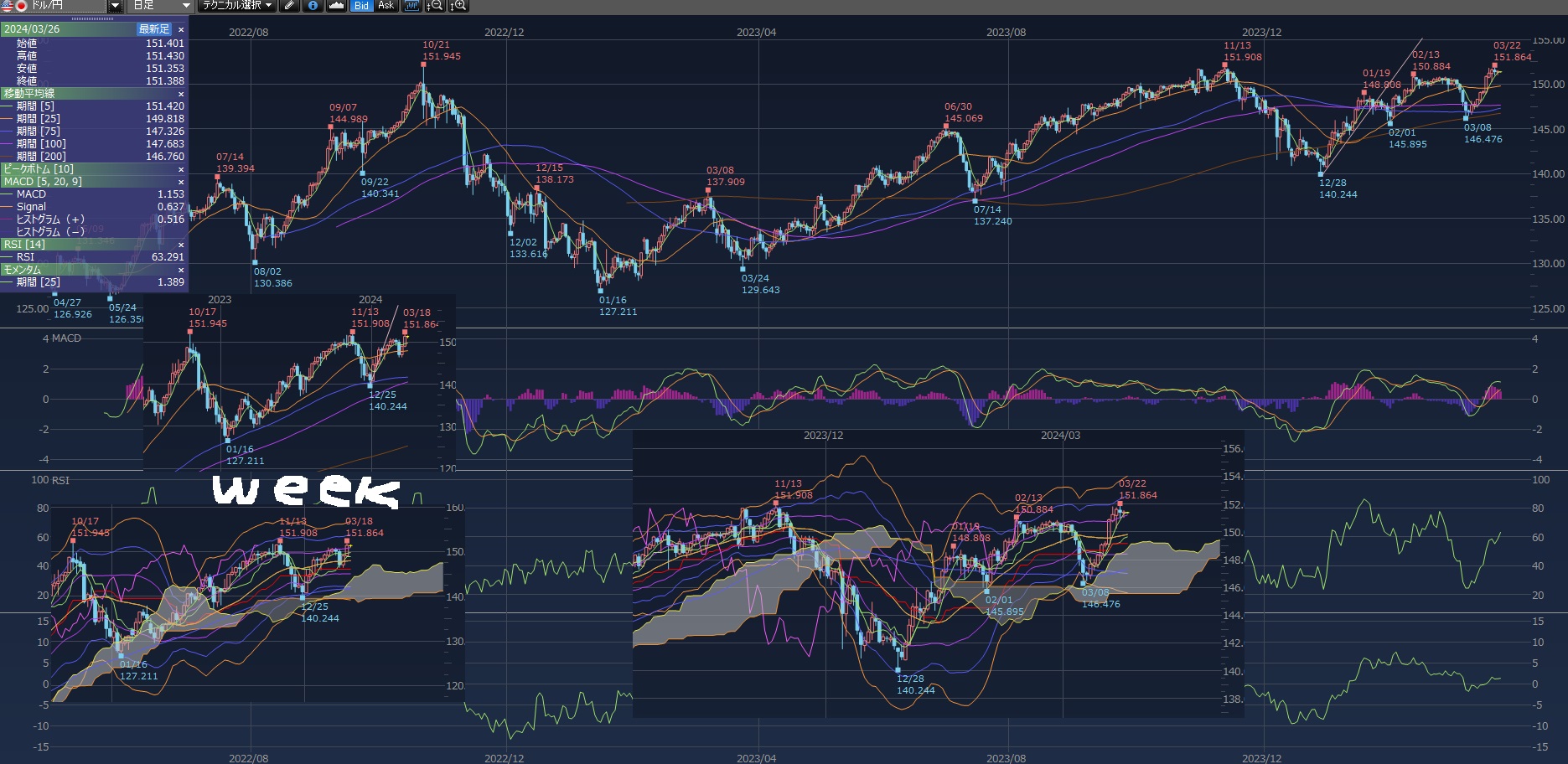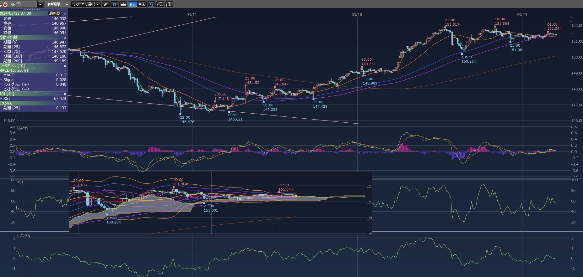 持ち合いからの下抜けでS。トレンド転換でL。上手い事行った!