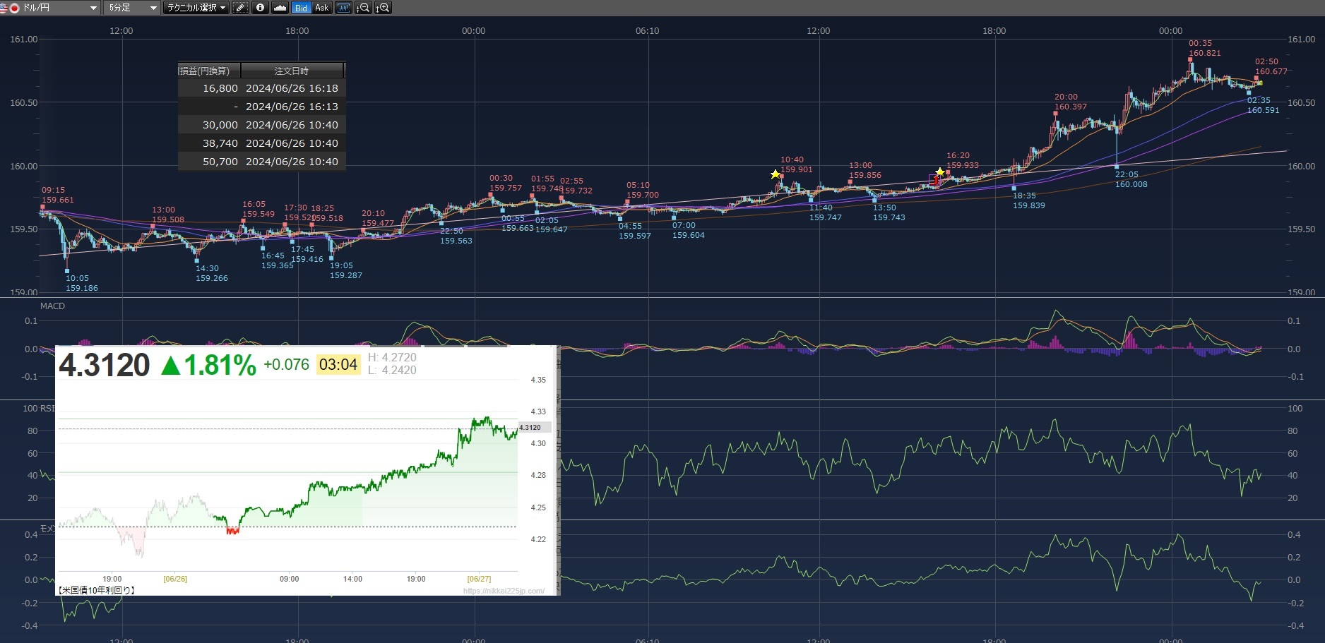 持ち越し分と当日(26水曜日)買った分を10時台に利確