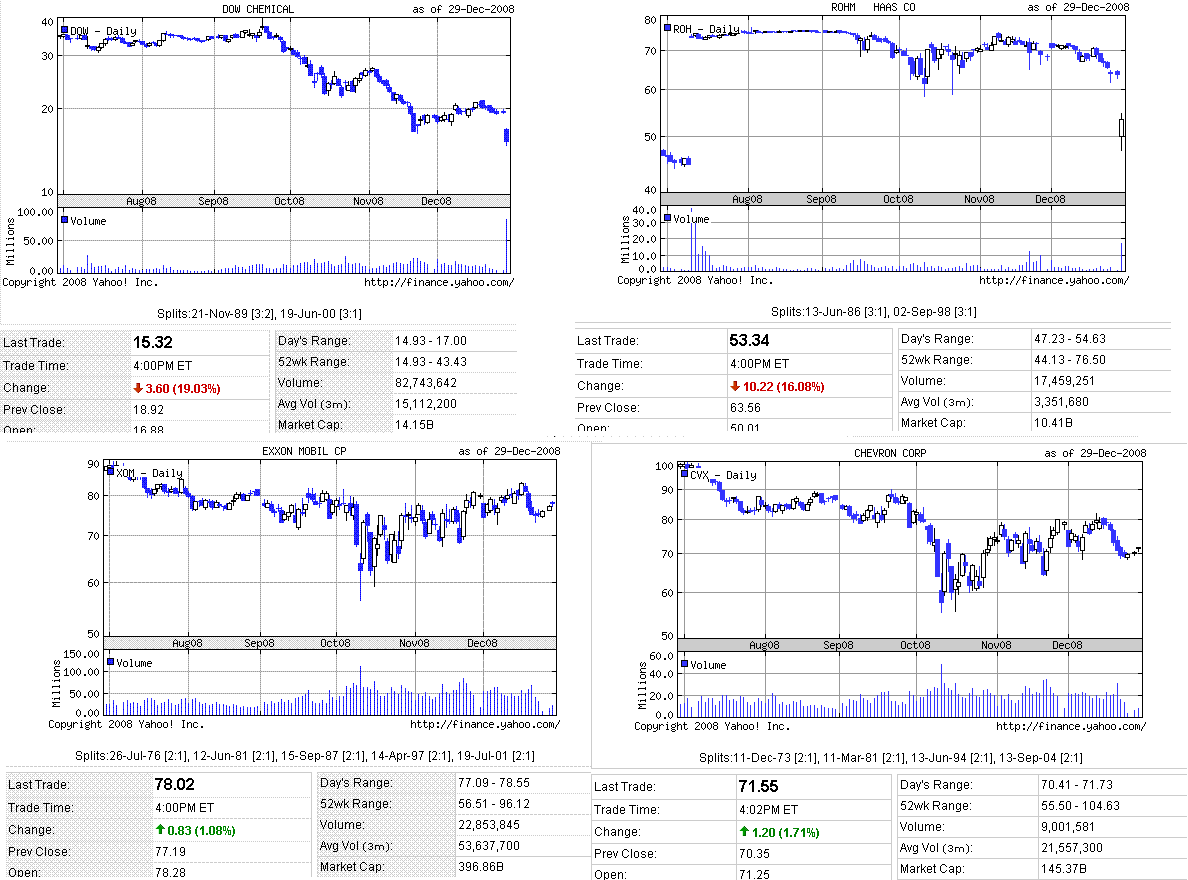 ・米ダウ・ケミカルとR&H、株価20%急落