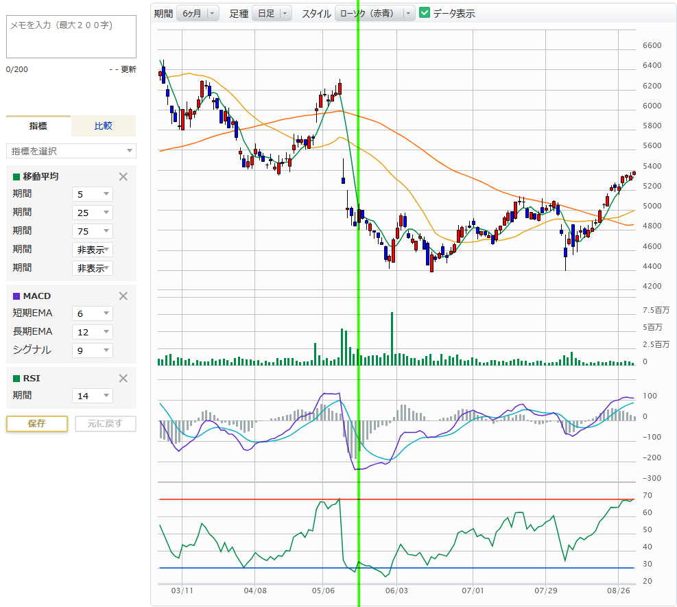 今回の反省としては、MACDがゴールデンクロスする前に買った事かなと。
