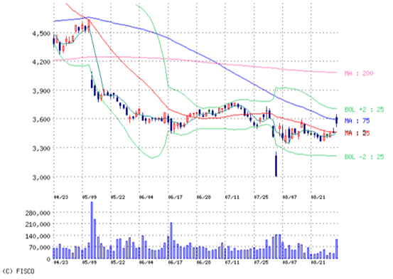 出来高上がって、株価も上がって。3本越えた。残す200日線に向かってくれ。