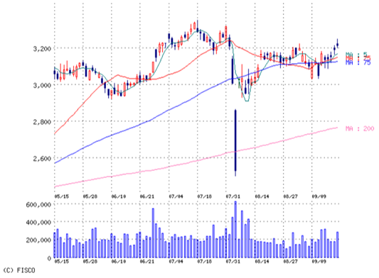 気が付けば75日線以外を下に見。