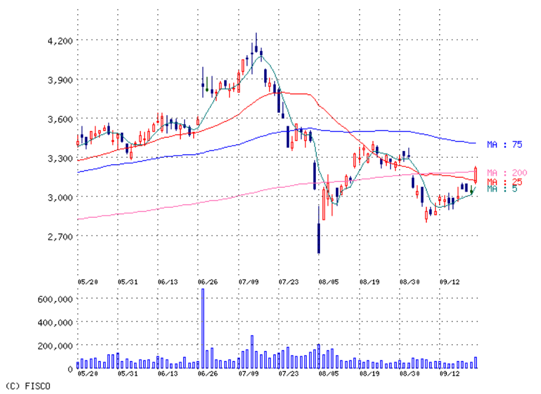 *値上がり率;3社