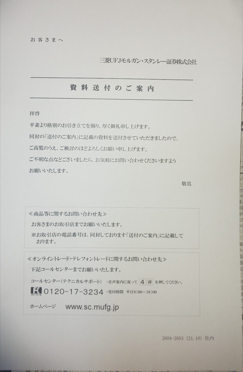 三菱UfJモルガン証券からA4サイズの封書が届いた。