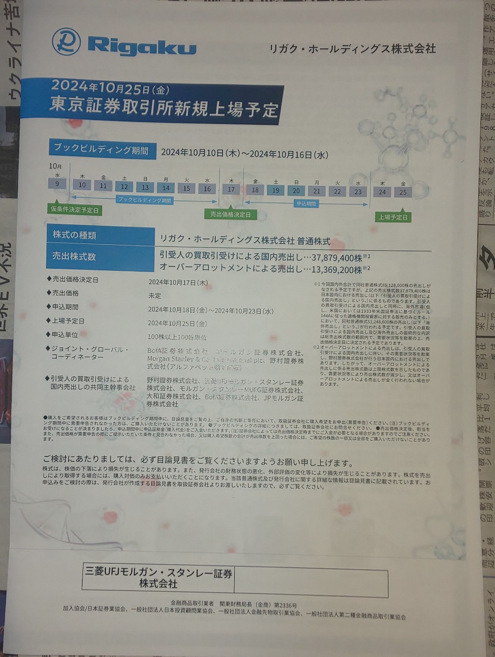 「何だろう?」と開けたら、25日に新規上場する「リガクHD(268A)の案内だった。