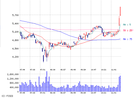 決算受けて株価急上昇を二日。