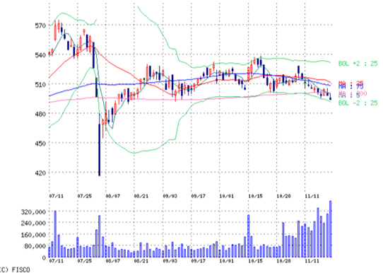 チャートの形で見ると買い増しなんかしないのよ。逆に動かないから損切りして現金作ろうかなとさえ思うんよ。