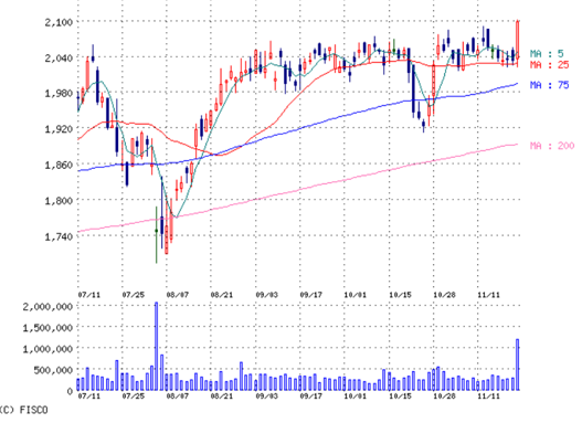 TOPIXがボックス傾向なので、