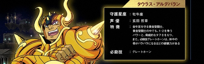 ほう、金牛宮と いえば、聖闘士星矢(セイントセイヤ) を